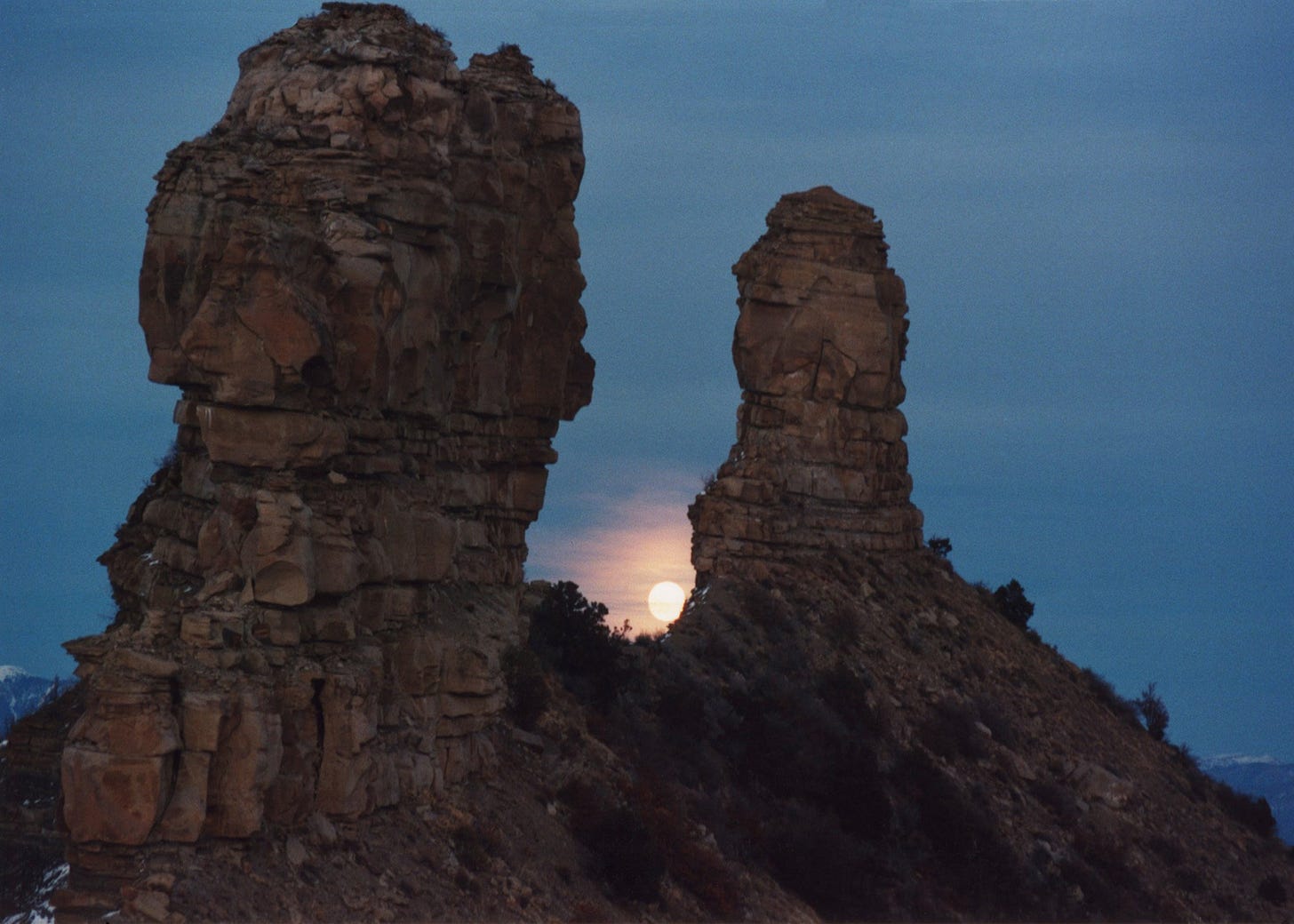 There is Chacoan outlier in southern Colorado called Chimney Rock (no, it's different from the Chimney Rock you pass in the game Oregon Trail). And a little known fact about the moon is that it has its very own special kind of procession, one that is not nearly as noticeable as the solstices: the lunar standstill. It happens every 18.6 years, and it's when the moon reaches it most northerly and southerly paths. And, Chimney Rock Great House is built so that it points directly and obviously at the lunar standstills ("obviously" meaning that it couldn't have happened by chance. Dendrochronology--a perfectly accurate tree-ring dating system--shows that the two major construction phases of Chimney Rock occurred the years of this lunar standstill.)
